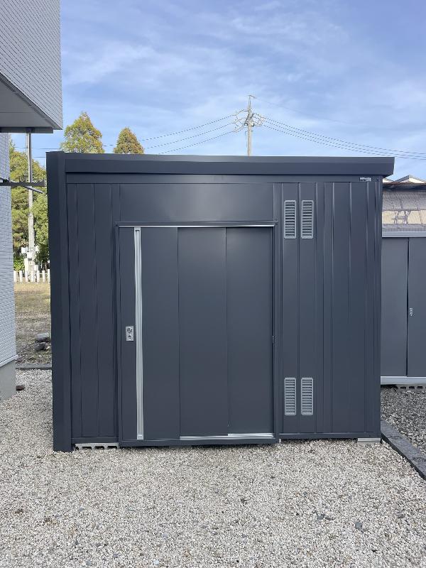 スタイリッシュな外観が魅力のイナバガレージアルシアフィット DM-2626HYA(床付タイプ)の施工をさせていただきました。機能性と快適性を高めるオプションを採用しています。