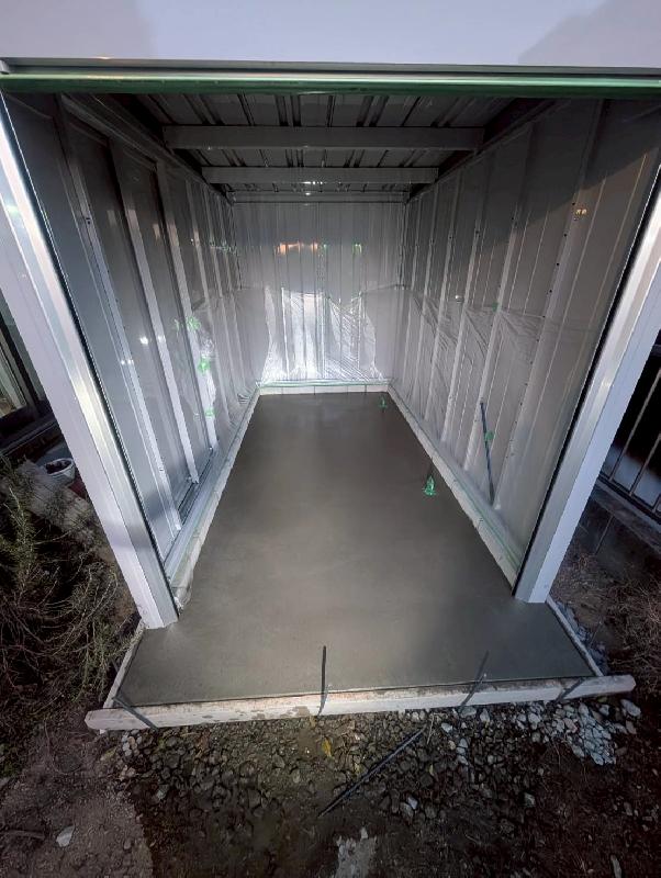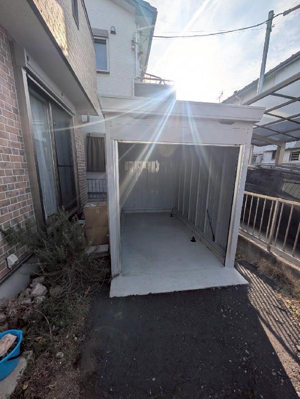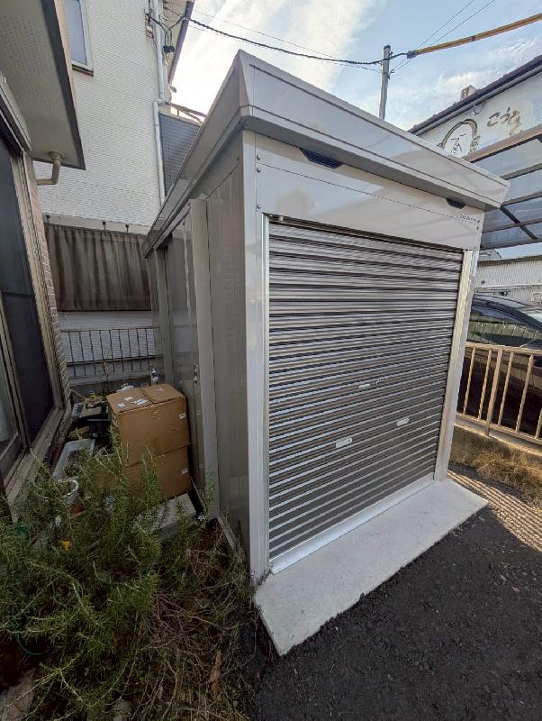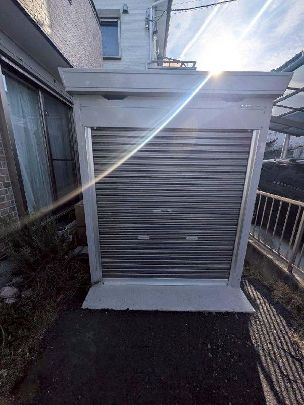 今回はイナバ バイクガレージFM-1830SD、土間コンクリート仕様により安定感のある設置で大切なバイクをしっかりと支える基盤を整えました。オプション:内施錠付引戸