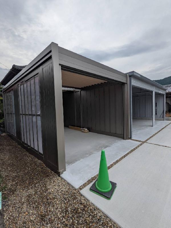 イナバ物置のガレーディア2連棟とイナバ倉庫を施工させていただきました。 多種類のガレージを組み合わせ設置することにより さらに利便性のある倉庫が出来上がります。 弊社は施工実績もありますので、お客様のご希望にそった倉庫の提案を させていただけるかと思います。 ぜひ一度ご相談ください。