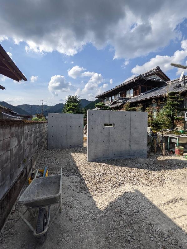 木枠をたて、コンクリートを流し込み