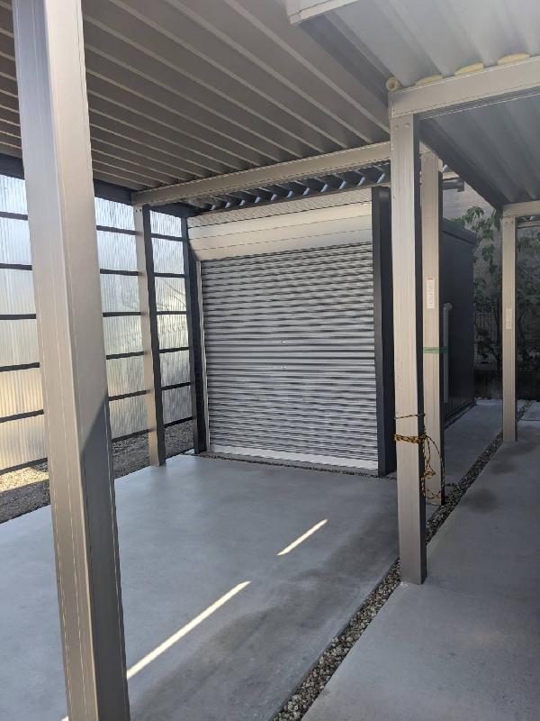 今回はガレージと物置を施工いたしました。 ガレージには風よけの施工もし、目隠しの役目も果たしております。 物置はぴったりサイズで設置しています。 ガレージも物置も使い勝手のよい、ご自分に合ったスタイルに変更ができます。